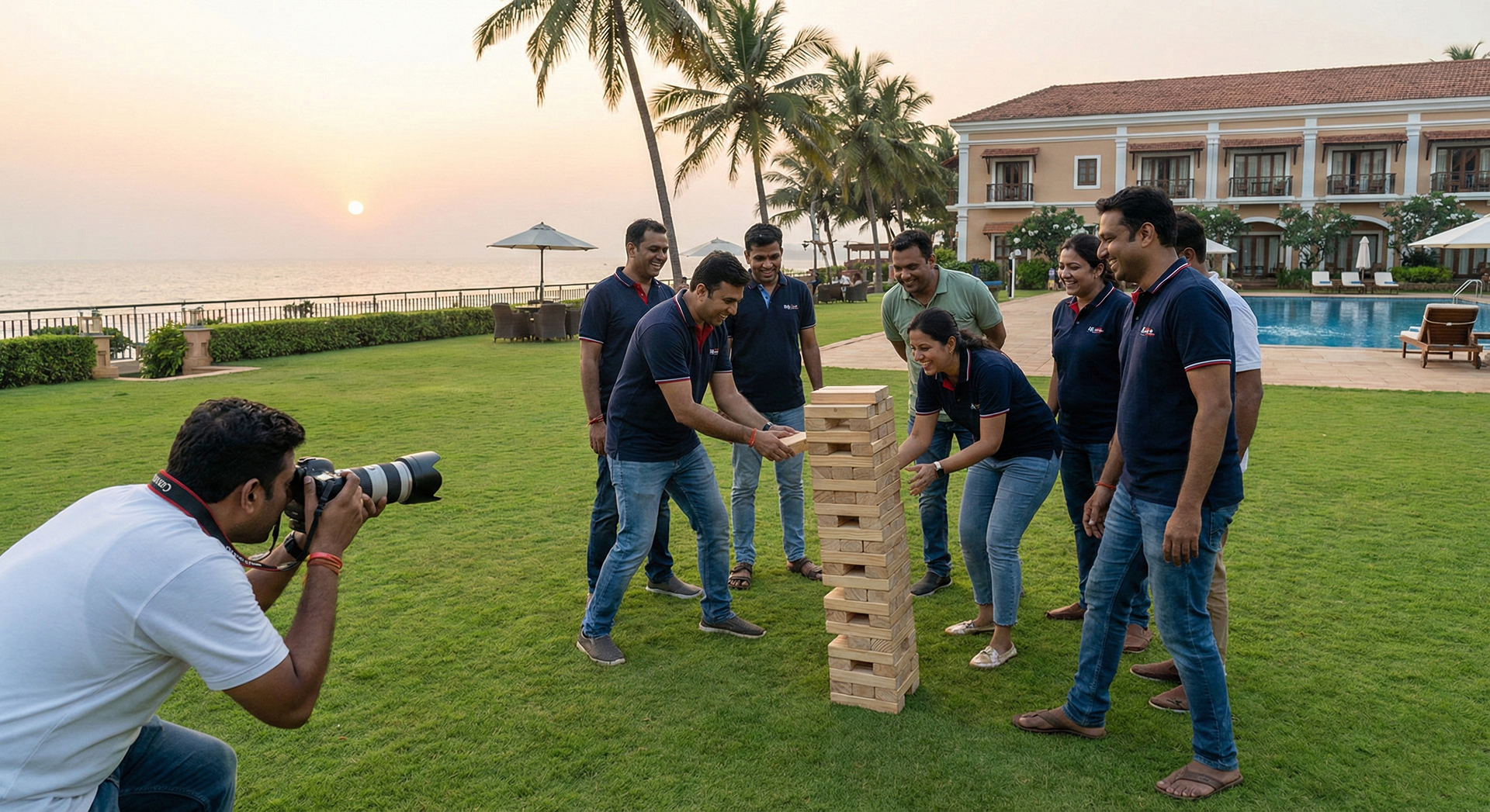 Our professional photography, videography, and drone services in Goa capture every moment of your corporate team‑building and outdoor activity experience with cinematic precision. From action shots and candid interactions to stunning aerial views, our visual coverage is perfect for corporate events, office outings, brand content, and social media storytelling. These high‑quality visuals preserve memories, boost brand image, and showcase teamwork, energy, and success in the most impactful way.