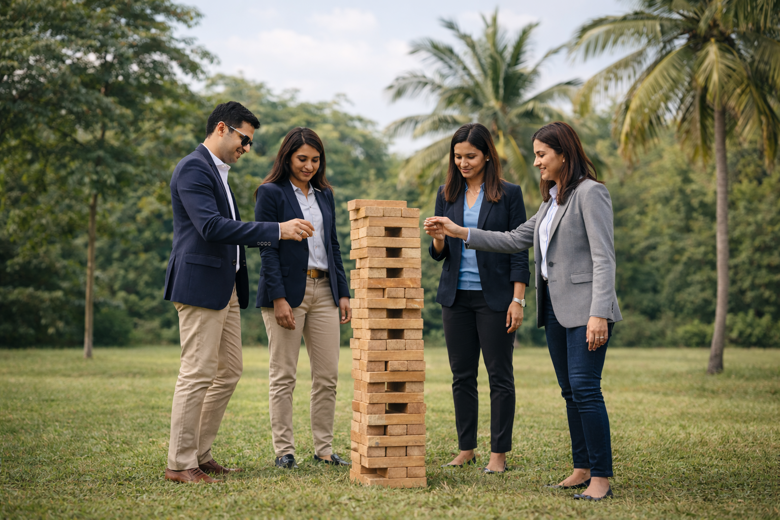 This immersive VR balance challenge activity in Goa is a powerful corporate team‑building and experiential learning experience that builds focus, confidence, and trust. Participants test their balance and decision‑making skills in a safe, controlled virtual environment, making it ideal for corporate team building, office outings, and employee engagement programs in Goa. The activity promotes leadership, problem‑solving, and teamwork while delivering high energy, fun, and memorable interaction for all group sizes.