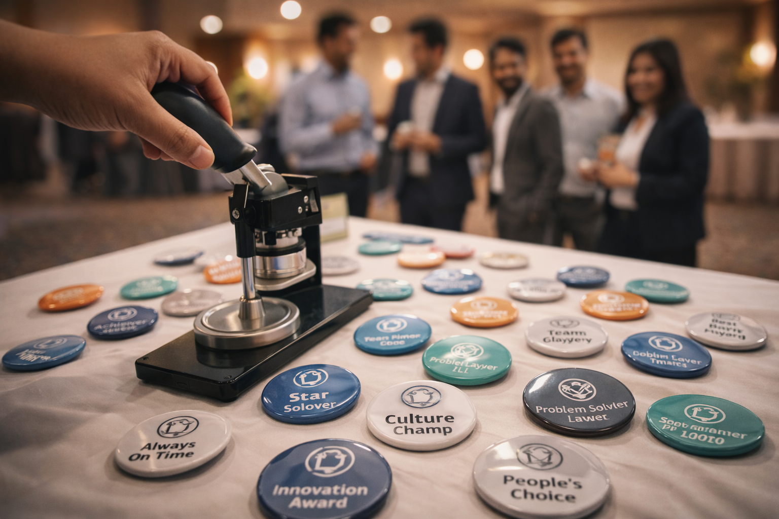 Our custom button making activity in Goa is a creative and engaging corporate team‑building experience that encourages expression, recognition, and team bonding. Perfect for corporate events, office outings, and employee engagement programs, participants design and press their own achievement badges such as Top Achiever, Team Player, and Innovation Star. This hands‑on activity boosts morale, reinforces company culture, and creates meaningful take‑home memories while delivering fun, creativity, and collaboration in a professional setting.